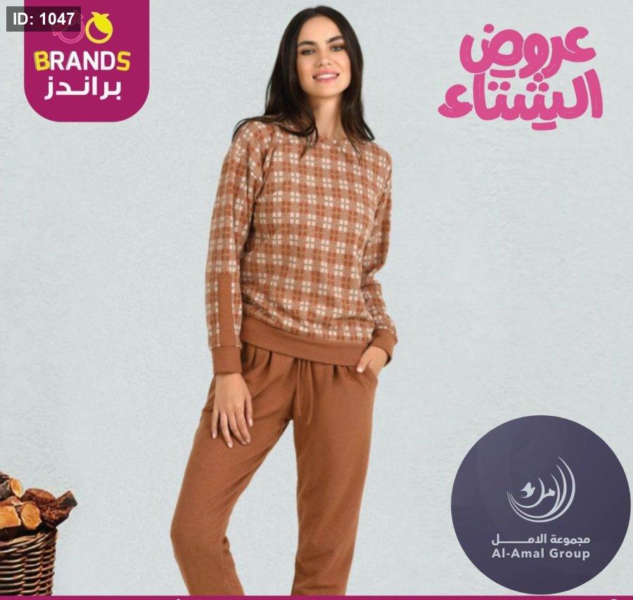 بيجامة قطعتين قميص مخطط وبنطال سادة