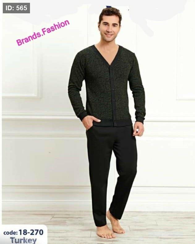 بيجامة قطعتين قميص مخطط وبنطال سادة