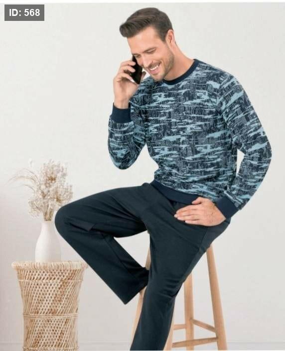 بيجامة قطعتين قميص مخطط وبنطال سادة