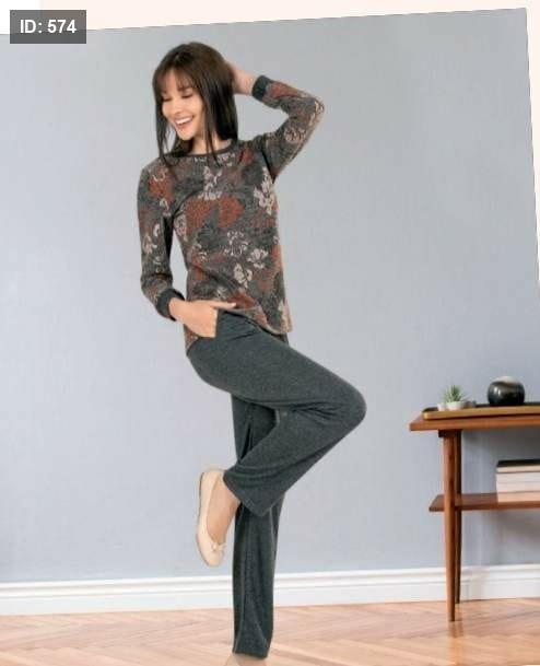 بيجامة قطعتين قميص مخطط وبنطال سادة