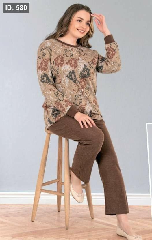 بيجامة قطعتين قميص مخطط وبنطال سادة