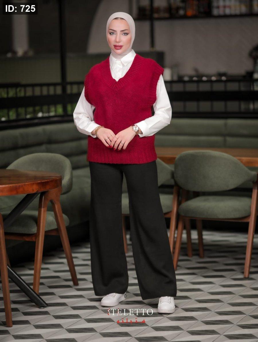 بيجامة قطعتين قميص مخطط وبنطال سادة
