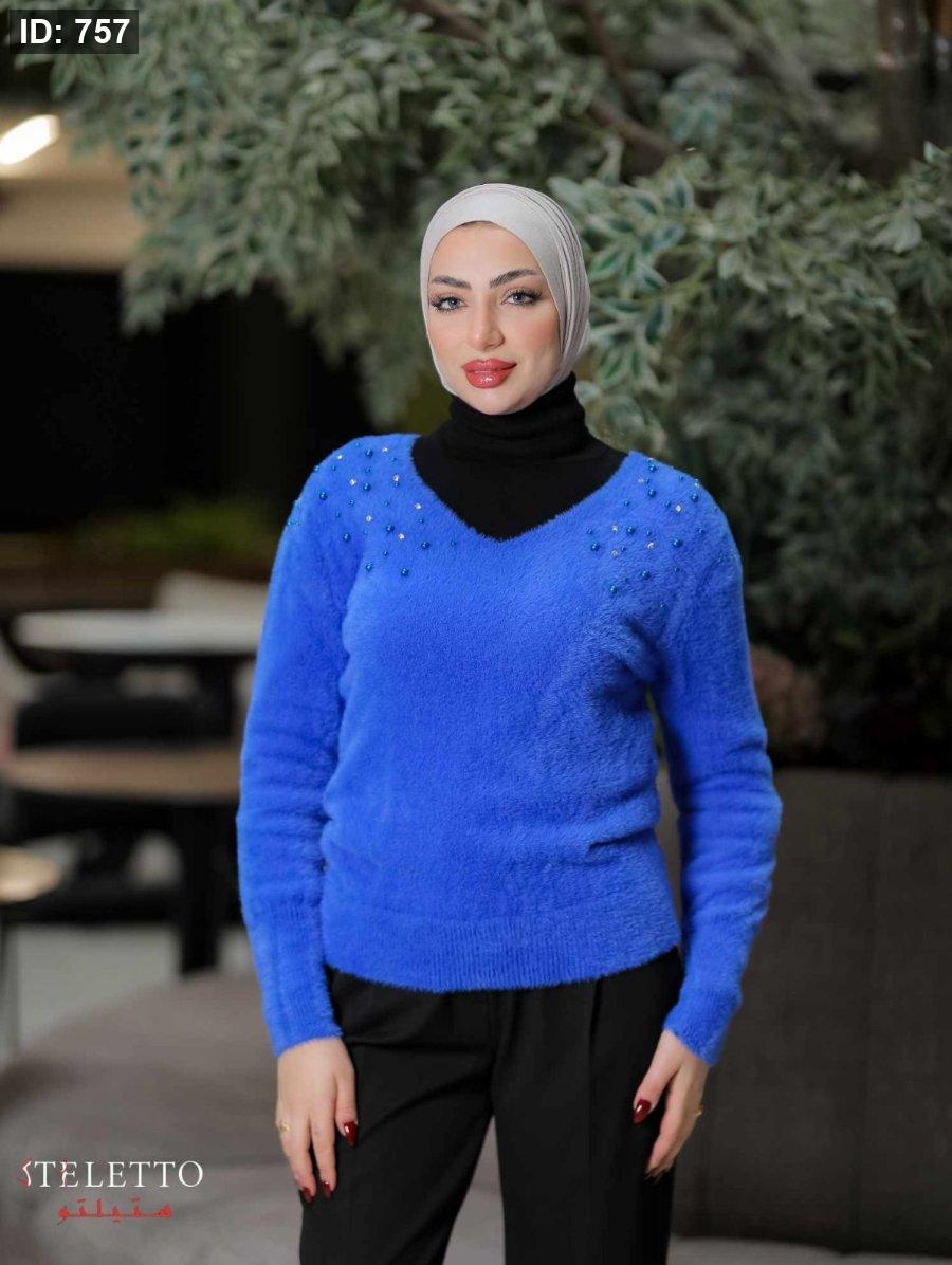 بلوز نيلي مزين بالخرز one size