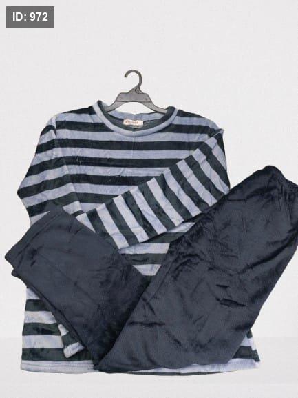 بيجامة قطعتين قميص مخطط وبنطال سادة